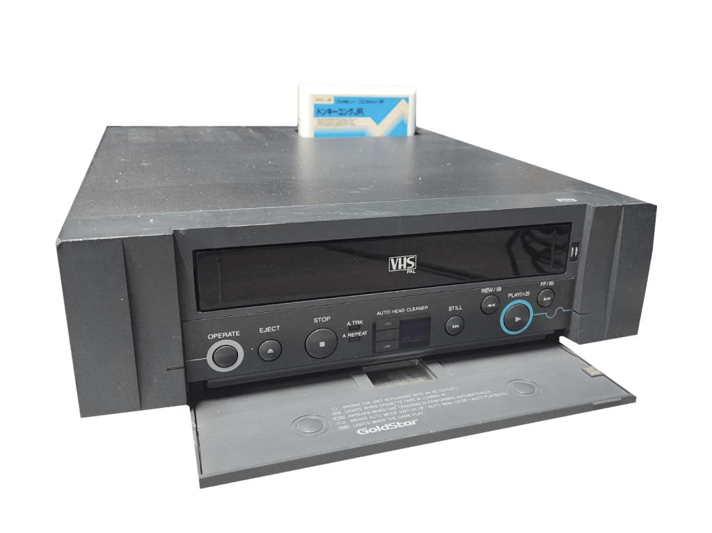 The P-G500AW supports watching PAL VHS tapes and Nintendo Famicom cartridges. Unlike the P-R500AW it’s based on, It does not have a record feature, so you can only play back tapes. Unlike most other Famicom systems, the Game VCR does not have controller ports. Instead, the game functions are controlled using a wireless remote in the shape of a game controller. This remote has a switch labeled “Game” and “Video” which is unfortunately the only way to change modes on the system, meaning without the remote, it is stuck in VHS mode.