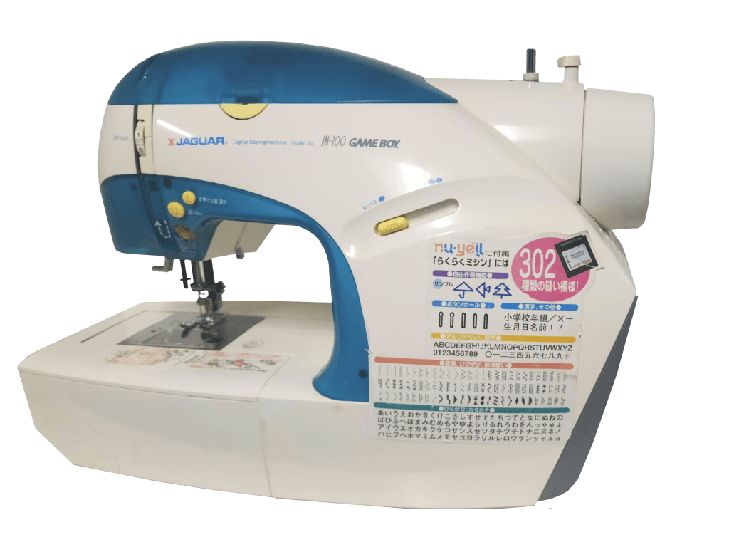 The JN-100 was a collaboration between Japanese sewing machine manufacturer Jaguar and Nintendo. In the early 2000s, competing computerized embroidery machines were expensive so they decided it was more economically viable to use the wildly popular Game Boy to operate the machine instead of developing expensive proprietary hardware. The machine was discontinued around April 2005 as the Game Boy was starting to be phased out by Nintendo and the technology to make computerized sewing machines became more affordable.