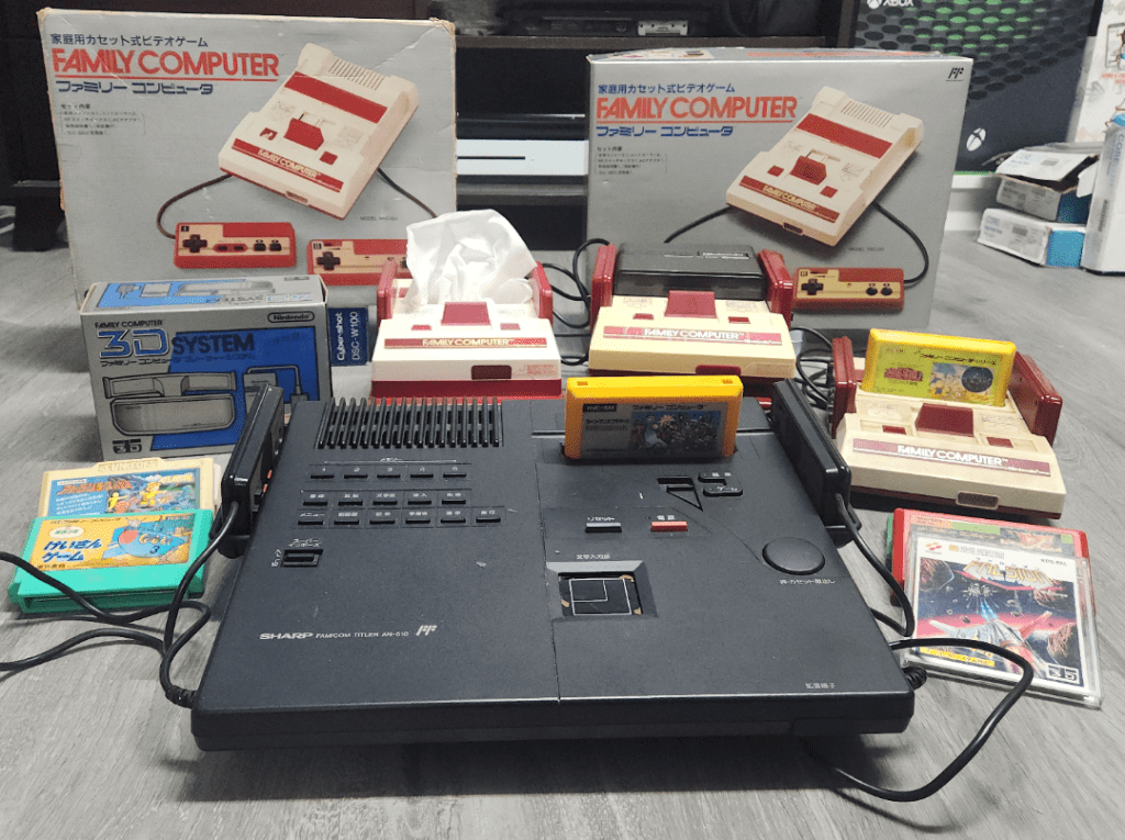 Famicom console created by Sharp in partnership with Nintendo. As well as being a fully featured Famicom console, this variant also had the added capability of being used as a Titler, a rudimentary video editing machine, meant to overlay text and images on top of footage. Additionally, this model includes a native S-Video output and different PPU which is able to output RGB video with a simple mod, unlike other variants